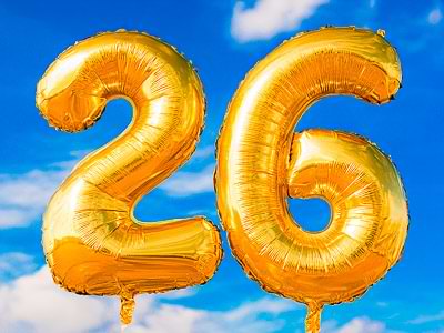 Lösungszeiten für dieses PuzzleFotoGolden balloons on the form of the digits twenty six against blue sky Teilen Sie dieses Puzzle | ||
